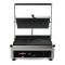 Plaques striées 35×23 cm, plaque supérieure autobalancée. Thermostat jusqu'à 300 °C. Easy Clean System : plaques amovibles en 25 s, lavables au lave-vaisselle. Utilisable en presse à panini ou plaque à snacker. Jusqu'à 90 paninis ou 100 pièces viande/poisson/heure. Pro, rapide, hygiénique.