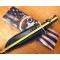 SUPERBE GROS BOWIE D'OCCASION ENCORE EN TRES BON ETAT POUR LA CHASSE OU RANDONNEE EXTRÊME (((( TRES MINIMES TRACES DE FONCTION SUR LA LAME - VOIR LES PHOTOS DETAILLEES - ))))) LAME = 25 cm - TRES EPAISSE = 4,5mm - ET MASSIVE - PLAQUETTES DE MANCHE EN BOIS AVEC RIVETS LAITON AINSI QUE LA GARDE -- FABRICATION ARTISANALE LAME ACIER MONTEE A PLATE SEMELLE REDUITE EN LARGEUR POUR ÊTRE ASSEMBLEE AVEC PLAQUETTES , PUIS RIVETEES !! CE LEGENDAIRE GROS COUTEAU INVENTE ET CONSTRUIT AU TEMPS DE DAVID CROQUET A TOUJOURS FAIT REVER LES TRAPPEURS , LES EXPLORATEURS , LES SOLDATS DE CERTAINS PAYS !! CE ROBUSTE COUTEAU COUPE ENCORE , VOUS POURREZ LE REAFFÛTER UN PEU SELON VOS BESOINS CE N' EST PAS UNE OBLIGATION CAR IL PEUT ENCORE TAILLER UN MORCEAU DE BOIS OU TRANCHER UN QUARTIER DE VIANDE!! POIDS SANS LE FOURREAU = 615 grsrs - FOURREAU EN CUIR TEINTE NOIRE AVEC FERMETURE PRESSION DE BONNE QUALITE -- LA LAME N'A AUCUN CRAN , FABRIQUEE EN UN SEUL MORCEAU D'ACIER DE LA POINTE AU BOUT DU MANCHE -- UNE MICRO OXIDATION STOPPEE QUE J'AI PRIS EN PHOTO = 2 mm DE lARGE SUR 4 mm DE LONG , SACHEZ QUE LORSQUE L'ON NE SE SERT PAS DE SON COUTEAU UN CERTAIN TEMPS, IL FAUT LE GRAISSER GENEREUSEMENT SURTOUT SI VOUS AVEZ PRIS LA PLUIE UN CERTAIN MOMENT - UNE EXCELLENTE PRISE EN MAIN -- LA LAME S' ELARGIE VERS VERS L'AVANT EN DIMINUANT D'UN COUP VERS LA POINTE !! LONGUEUR DU MANCHE AVEC GARDE = 13 cm -- PASSANT POUR CEINTURON OU CEINTURE JUSQU'A 6 cm -- EXCELLENT POIGNARD, SUPER SOLIDE , MASSIF , POUR LA CHASSE , LA RANDONNEE , LA JUNGLE, ET BEAUCOUP D'AUTRES CHOSES -- UN AMI DANS LES MOMENTS DIFFICILES -- SUPER OCCASION ENCORE TRES FONCTIONNELLE -