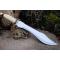 Couteau chasseur d'ours à lame fixe - Longueur totale 44cm - Longueur de lame 30.5cm - Dents sur le haut de la lame - Lame en acier Carbone 1055 - Lame clip point recurve - Garde & Pommeau en laiton - Pommeau guilloché - Manche en os - Entretoises - Fabrication Artisanale - Etui cuir