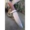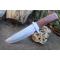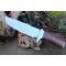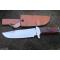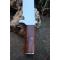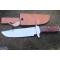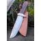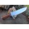 Couteau de chasse Bushcraft Survie à lame fixe - Longueur totale 30.50cm - Longueur de lame 18cm - Lame en acier carbone 1055 - Lame type drop point plain edge finition satin - Gros manche en bois - Mosaic pins - Grosse garde en nickel - Etui cuir - Fabrication artisanale