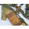 4) trousse cuir fauve avec son contenu : chargette, huilier, 2 écouvillons ,