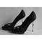 Escarpins Gucci en satin noir, talon argenté en forme de bambou