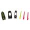 Guidon BirdBuster, 3 bases de différentes largeurs, 1 aimant, 2 fibres rouge (1 triangulaire, 1 ronde), 2 fibres vertes (1 triangulaire, 1 ronde).