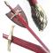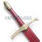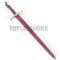Superbe réplique de l'epee Oathkeeper rouge. Il s'agit de la version décrite dans le livre appartenant a Tyrion. La lame rouge est en acier 440 stainless steel non coupante avec gorges. La Garde est en acier décorée. La poignée est recouverte d'un simili cuir rouge. Le pommeau est en forme de tête de lion.