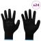 Gants de Travail 24 pcs Noir 9 / l PolyesterCes gants modernes sont conçus pour protéger et assurer le confort de l'utilisateur, alliant style et praticité. Que ce soit dans un atelier, un jardin, sur une terrasse ou dans un garage, ils sont faits pour ceux qui ont besoin d'une bonne protection pour leurs mains. Avec leur polyester lisse, ils s'ajustent parfaitement sans négliger la sécurité, permettant à tous, des pros aux débutants, de se sentir à l'aise pour toutes les tâches. Caractéristiques du matériau : Fabriqués en polyester, ces gants sont antistatiques et respirants. Leur texture lisse te permet de les porter confortablement, réduisant la fatigue des mains et protégeant des décharges électrostatiques. Texture : La finition lisse assure une bonne prise et flexibilité, essentielles pour des travaux minutieux. Tu vas adorer la liberté de mouvement qu'apporte leur design bien pensé. Style : Avec un look moderne, ces gants mélangent sécurité et esthétique. Ils sont parfaits pour ceux qui veulent être à la fois pratiques et tendance. Instructions d'entretien : Pour les entretenir, il suffit de les laver à la main et de les laisser sécher à l'air. Évite les produits chimiques trop forts ou le sèche-linge, ça garde leurs qualités et leur durabilité. Utilisation polyvalente : Idéaux pour divers travaux dans des ateliers, jardins, terrasses et garages, ces gants sont parfaits pour assurer ta sécurité sans sacrifier le confort. Ne pas porter en cas de risque d'enchevêtrement avec des pièces mobiles de machines. Aucune protection contre les flammes n'est revendiquée. Ce gant ne doit pas être en contact avec une flamme nue. Avant utilisation, inspecter visuellement le gant afin de détecter tout défaut ou imperfection. En cas de détérioration (abrasion, coupure, déchirure...), le gant doit être mis au rebut. Pour les gants à deux couches ou plus, la classification globale ne reflète pas nécessairement les performances de la couche extérieure. Les performances prévues ne peuvent être significativement affectées par le vieillissement si le gant est stocké dans des conditions appropriées (humidité, température, propreté, ventilation, lumière). Conserver dans son emballage d'origine, dans des conditions normales de température et d'humidité, dans un local propre, couvert et ventilé. Ces gants ne sont pas lavables.