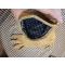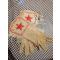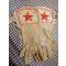 Belle paire de gants en peau, poignet doublé en laine et franges sur les côtés. Réalisation artisanale. Avec un jolie broderie au fil rouge a la main et un écusson étoile cousu au centre.