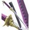 Replique d'une epee Genshin Impact, la superbe Epee Amenoma Kageuchi. Lame en acier 440 stainless steel decoree non coupante. Le manche et recouvert d'un tressage en coton violet. La garde en acier est finement travaille, en forme d'ecusson avec des pointes prononcees. Longueur totale : 100cm Longueur de la lame : 67cm Poids epee et fourreau : 1025grs Poids epee sans fourreau : 885grs livre avec son fourreau en simili cuir noir avec sangles pour port sur le dos