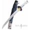 Superbe replique du tanto Ghost of Tsushima utilise par Jin Sakai. Tanto de coupe (Pouvant servir a l'entrainement) tranchante avec double gorge identique au model du jeu. Lame forgee en acier a haute teneur en carbone 1045 de type Maru. Le fourreau est en bois laque noir avec symbole de l'ile. Tsuba est en acier. Longueur totale epee dans fourreau : 55cm Longueur totale epee sans fourreau : 50cm Longueur de la lame : 32,5cm Poids Tanto et fourreau : 830grs Poids Tanto seul : 580grs Livre avec sa housse de protection et un presentoir en bois.