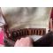 Gibecière en cuir et cordura avec porte cartouches, avec filet et trois poches, des taches à l'intérieur ainsi que des chiffres notés sur la poche principale, un petit peu de fleur de rouille sur la boucle de réglage de la bretelle autrement en bon état, les dimensions sont les suivantes, longueur en partant du milieu : 37,5 cm, hauteur 30,5 cm, profondeur des deux poches : 26,5 cm et de la petite : 14 cm, pas de prix de réserve.