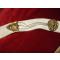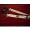 - Banderole en cuir chromé bianc , avec garnitures en laiton massif ( tête de lion et écu à la grenade )