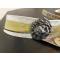 Banderole en buffle blanc et jaune avec garniture en laiton, manque une chaînette.