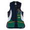 Gilet de tir Fossari modèle TRAP. Couleur verte avec zone renforcée bleue et doubles poches avant.