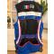 Couleurs bleu/blanc/rouge, nombreuses poches pratiques, filet respirant et renforts épaules.