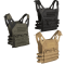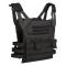 Porte-plaques de la 2ème génération de Mil-Tec. Le gilet s'ouvre à l'aide de 3 grandes fermetures bande autoagrippante sur l'avant et les bretelles sont également munies de fermetures bande autoagrippante ce qui permet de l'enfiler et de l'ôter plus facilement. Les surfaces bande autoagrippante sur l'avant permettent la fixation de patchs ou de bandes patronymiques. Compartiment sur l'avant pour ranger de petits objets ainsi que 3 passants élastiques pour y fixer de l'équipement. Deux compartiments internes pour plaques de protection et poignée de secours.