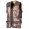Gilet de chasse réversible : un côté camouflage bois, pour vos affûts aux migrateurs ou le poste, l'autre orange haute-visibilité pour la battue.