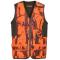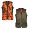 Ce gilet réversible dispose d'une face kaki et d'une face au camouflage Ghostcamo Blaze orange fluo. Il est équipé de renforts aux épaules (côté kaki), de 2 grandes poches fermées par pressions avec 2 rangées de cartouchières (balles et plombs) de chaque côté, d'un anneau porte gibier et d'un carnier doublé pvc au dos (côté kaki).
