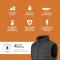 Avec 4 niveaux de chauffage en un seul clic, le powerbank amovible dure jusqu'à 5 heures avec une puissance de 25 % et jusqu'à 2,5 heures avec le réglage le plus élevé. Rechargeable en 5-6 heures.