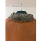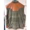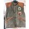 Gilet matelassé en cuir "daim" vert avec empiècements en cuir lisse marron (épaules, col, ...)