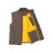 Gilet matelassé sans manches couleur chocolat, imperméable et déperlant, doublé orange, avec fermoir zippé protégé, poches aimantées, soufflets dos.