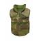 Gilet pare-balles camouflage, équipé de protections souples en Kevlar NIJ 3A couvrant le torse, les flancs et le col, avec emplacements avant et arrière pour plaques balistiques rigides 25 x 30 cm.