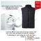 3 réglages de la température de chauffage selon vos besoins (3 modes de température à régler manuellement, en appuyant sur le bouton du gilet : Chaud: 45 degrés (lumière rouge) / Confort: 35 degrés (lumière blanche) / 25 degrés (lumière bleue)