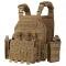 Le gilet est conçu pour accueillir des plaques balistiques SAPI 10x12, maintenues en place par deux sangles internes et un rabattement sécurisé, garantissant un maintien fiable et stable en toute situation.
