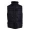 Gilet sans manche noir matelassé avec col montant et flaps "Sécurité" dissimulable.