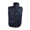 Vêtement chaud avec col officier et matelassé. Gilet sans manches avec doublure et matelassage en polyester. Existe en bleu marine ou noir.