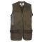 Gilet savane80% polyester, 20% coton, filet d'aération sur les côtés 100% polyester. Renforts aux épaules, 2 grandes poches basses, cartouchières extérieures 18 tubes, anneau porte-gibier et grand carnier avec doublure étanche et lavable.