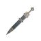Avec sa lame de 51,5 cm à double tranchant, ce gladius excelle en précision et en puissance, conçu pour percer les lignes ennemies comme les légionnaires l'ont fait pendant des siècles. Le fourreau noir robuste protège cette relique tout en lui conférant une allure austère et imposante, idéale pour une exposition muséale ou un arsenal historique personnel.