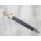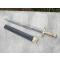 La poignée de style Roman, d’une seule pièce en laiton nervurée et pommeau rond comporte 26 cannelures. Elle recouvre en totalité la soie, sa fixation est effectuée par matage, aucun rivet ne traverse la poignée. La croisière droite symétrique est terminée par deux « quillons » à rouleaux.