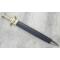 La poignée de style Roman, d’une seule pièce en laiton nervurée et pommeau rond comporte 26 cannelures. Elle recouvre en totalité la soie, sa fixation est effectuée par matage, aucun rivet ne traverse la poignée. La croisière droite symétrique est terminée par deux « quillons » à rouleaux.