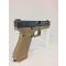 Il possède toutes les caractéristiques d'un Glock 17 Gen5 avec les éléments additionnels suivants : - Carcasse couleur coyote. - Organes de visée luminescents en acier. - Attache de dragonne.