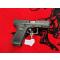 Ça fait la taille d'un G19 en plus léger, commandes et fonctionnement identique au grand frère, mire réglable : élévation et dérive en bonus, kit nettoyage, 2 chargeurs + 2 extensions de poignée avec "queue de castor"( oui,oui, ça s'appelle bien comme ça) et la joli boiboite qui va bien.