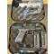 Ça fait la taille d'un G19 en plus léger, commandes et fonctionnement identique au grand frère, mire réglable : élévation et dérive en bonus, kit nettoyage, 2 chargeurs + 2 extensions de poignée avec "queue de castor"( oui,oui, ça s'appelle bien comme ça) et la joli boiboite qui va bien.
