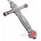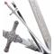 Magnifique replique de l'epee de Godric Gryffondor vus dans Harry Potter. Manche richement decore recouvert de cristal rouge. Le manche en acier est serti de cabochons de cristal rouge (strass). Lame en acier inoxydable non tranchante. Longueur totale : 86cm Longueur de la lame : 68cm Poids epee et fourreau : 590grs Poids epee seule : 400grs Livre avec son fourreau avec ornement.