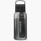 Pour celles et ceux qui souhaitent plus d'autonomie, la gourde avec filtre à eau Lifestraw Go existe également en format 1L. Comparé au format 650 ml, on a une gourde avec une contenance accrue : on peut donc aller plus loin sans avoir à refaire le plein. Le filtre Lifestraw est inclus : filtre à fibres creuses anti-bactérie & antiparasite + filtre à charbon anti-odeur & goûts. Coloris : noir.