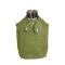 Gourde militaire avec housseType armée M52. Fournie avec housse feutrée verte armée, avec passant ceinture et crochet métallique pour ceinturon armée. Bouchon vissant avec joint et chaînette solidarisée. Compatible quart emboîtable (en option). La housse fournie avec la gourde peut également recouvrir le quart emboîté. Pas de vernis intérieur.
