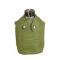 Type armée M52. Fournie avec housse feutrée verte armée, avec passant ceinture et crochet métallique pour ceinturon armée. Bouchon vissant avec joint et chaînette solidarisée. Compatible quart emboîtable (en option). La housse fournie avec la gourde peut également recouvrir le quart emboîté. Pas de vernis intérieur.
