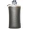 Quand on regarde la bouteille Hydrapak Flux, on dirait quasiment une gourde de randonnée normale mais c'est en fait une gourde souple et une gourde pliable. Du coup, c'est aussi une bouteille extrêmement compacte (si elle est vide et pliée). On la plie ou on la déplie à volonté suivant que l'on souhaite transporter de l'eau ou gagner le maximum de place. Par ailleurs, elle est extrêmement légère. Le plus : elle possède un bouchon étanche à vis et ce dernier ne nécessite pas un dévissage systématique dès que l'on souhaite boire. Ainsi, on a juste à tourner le clapet rotatif localisé sur le haut du bouchon et à presser la paroi de la gourde pour déclencher le versement de l'eau. Sécurité + système anti déversement : sans presser la paroi de la bouteille, aucune goutte ne se déverse. Hauteur et diamètre de la bouteille : 250 x 115 mm. Volume rangé : 11 x 10 cm.