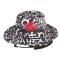 Achat en ligne Bob ficelle noir et blanc design streetwear travaillé façon tags city et urban et brodé en rouge Money Power Respect pour un look direct par Nyls Création collection Heartbreaker, chapeau bob homme et femme en toile légère cousu d'un large bord et d'un cordon de serrage, taille adulte.