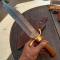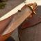 Grand Couteau BOWIE DAMAS Manche en Bois avec Étui en cuir marron