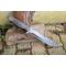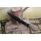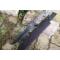Couteau à lame fixe - Longueur totale 41.5cm - Longueur de lame 26cm - Tranchant 25cm - Lame de type drop point plain edge finition stonewash - Construction d'une seule pièce - Full Tang - Lame en acier 440 - Plaquettes du manche en bois - Trou en bout de manche pour dragonne - Etui nylon