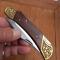 Grand Couteau de Chasse Pliant Manche en Bois avec Étui en Cuir