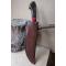 Longueur du manche 12cm - Longueur de la lame 18cm - Lame en Acier damas 256 couches - Lame de type drop point - Construction d'une seule pièce - Full tang - Fine lame idéal pour la cuisine - Plaquettes du manche en bois cocobolo en forme de tête de canard - Mosaic pins - Trou pour dragonne - Mitres en bois - Fabrication Artisanale - Les dessins de la lame sont uniques comme une empreinte - Etui simili cuir - Idéal pour les sorties rando avec repas sur place