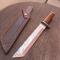 Grand Couteau TANTO Damas 34 cm avec Fourreau en cuir Manche en Bois