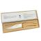 Ce grand couteau à fromage possède un socle intégré au manche, ce qui vous permet de poser votre couteau à la verticale sur votre plateau.