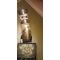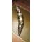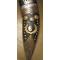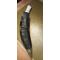 Grand couteau à lame courbe dans son fourreau accompagné de ses deux petits couteaux. Couteau traditionnel népalais. Fourreau très richement décoré de pièces de laiton figurant casque et armes traditionnels, Ganesh, feuilles de laurier. Décor en os du yin et du yang etc... Lame entièrement gravée deux faces. Poids de près d'un kilo. Excellent état voir photos