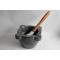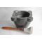Mortier en marbre noir à oreilles et bec verseur diamètre interne : 19 cm avec pilon (longueur : 41 cm / diamètre : 9 cm) d'époque fin XVIIe siècle bon état, usures d'usage, voir photos