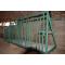 Très solide râtelier mural de fabrication artisanale articulé pour recevoir 1 tonne de fourrage. 2 balles rondes et 9 ballots de moyenne densité. Toutes les surfaces ont été entièrement poncées et ont reçu 3 couches de peinture de qualité garantie contre les intempéries : zones métalliques une couche anti rouille plus deux de peinture, et parties boiserie : une couche d’imprégnation et deux couches de peinture. Il est en excellent état et est stocké à l’abri. Il s’oriente grâce à 4 grands pivots sur un angle de 90°. Deux gros loquets latéraux permettent de fixer le râtelier en diverses positions d’utilisation : soit pour le remplissage, soit pour le réglage à la hauteur maxi, voire dans des positions intermédiaires souhaitées. Dimensions : largeur 3, 23 m ; hauteur de la face avec barreaux: 1, 36 m ; profondeur du plancher 1,20 m. Le cadre des barreaux est en tube carré épais de 40 mm, renforcé par un fer plat soudé de 35 x 8 mm, et les barreaux sont en tube carré épais de 30 mm. Ils sont espacés de 85 mm chacun, alternant avec 4 espaces supérieurs. L’épais plancher est en bois exotique imputrescible de 40 mm. Il y a deux très solides renforts latéraux en tube rond lourd de diamètre 50 mm. Enfin, les gros loquets sont en acier de diamètre 24 mm et mesurent 40 cm de long.